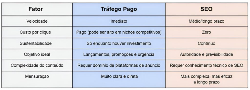 Se a prioridade é crescimento imediato, o tráfego pago é a melhor escolha.